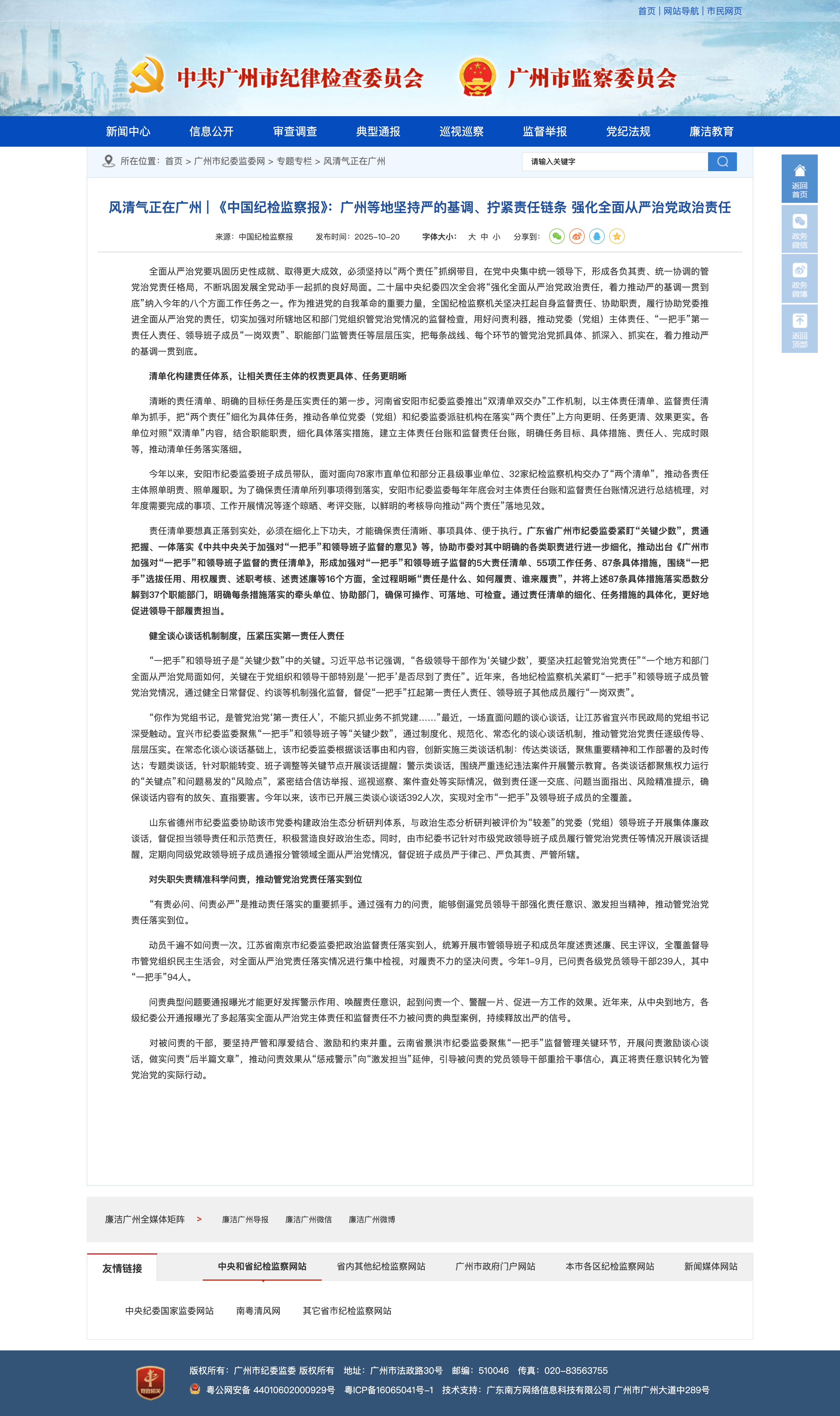 风清气正在广州-《中国纪检监察报》:广州等地坚持严的基调、拧紧责任链条-强化全面从严治党政治责任