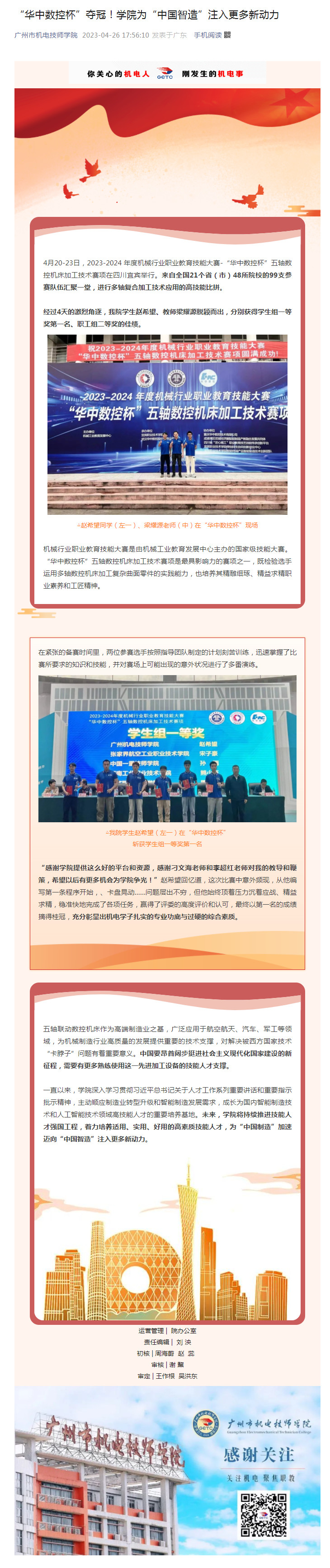 “华中数控杯”夺冠!学院为“中国智造”注入更多新动力