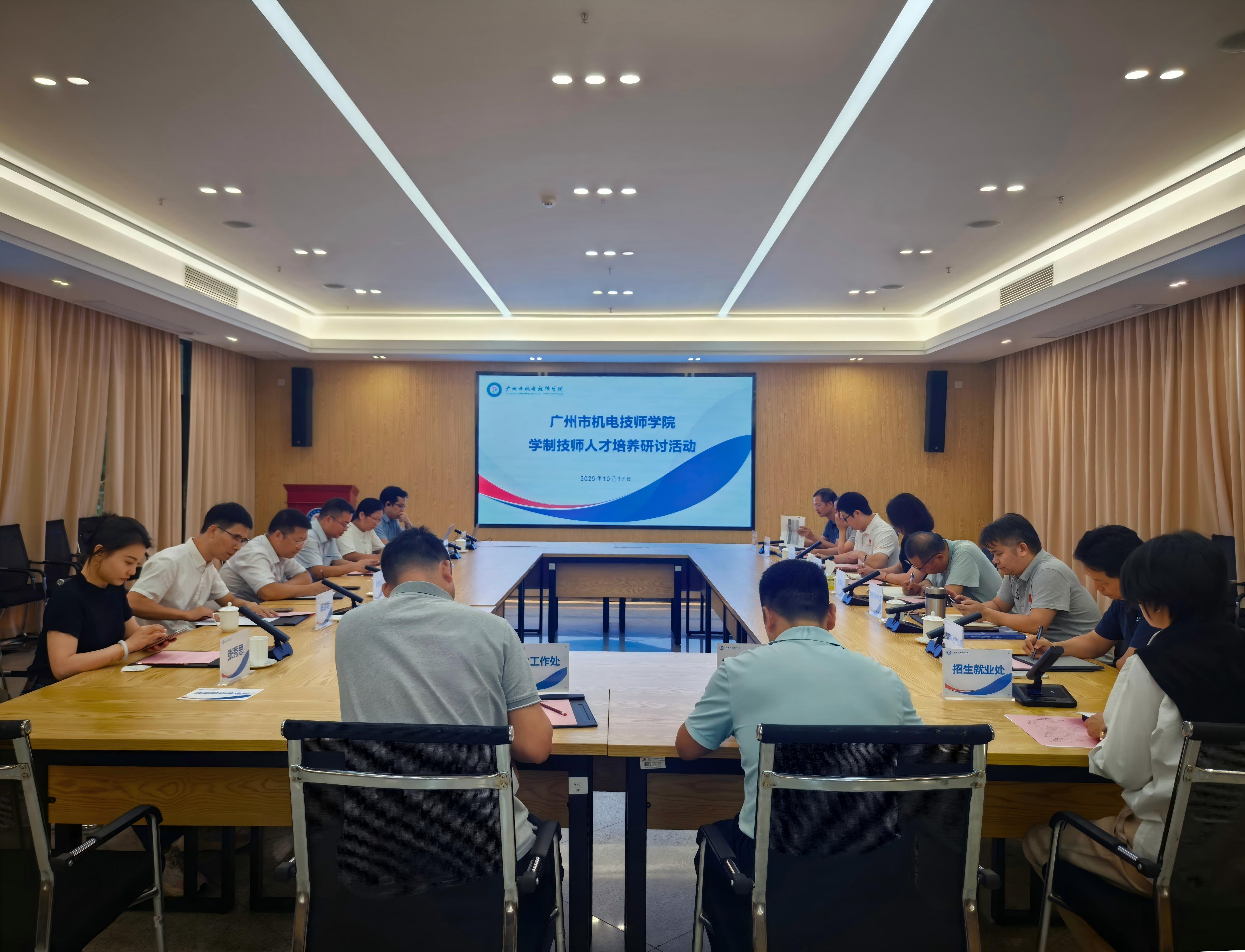 10月17日下午,广州市机电技师学院在厚德楼综合活动室组织召开学制技师人才培养专题研讨活动。活动邀请大族激光科技产业集团股份有限公司营销总监罗忠陆、广州数控设备有限公司智能制造工程中心总监魏文锋、佳帆科技有限公司教育事业部负责人张秀思、广州发那科机器人有限公司技术培训工程师谢秀君、广州因明智能科技有限公司电气工程师陈达明、广州人才集团下属网才科技(广州)集团股份有限公司部门副总监向珂等企业专家参与交流。学院专职党委副书记谢黧,智能制造产业系、智能控制产业系、机电装备产业系相关负责人,学制技师试点专业带头人,以及教研室、教务处、招生处、校企合作办公室、学生处、创新创业指导中心、培训处等职能部门负责人共同参会。