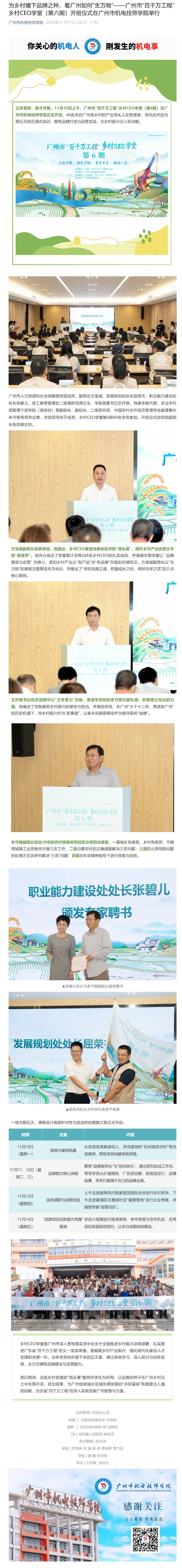 为乡村播下品牌之种,看广州如何“生万物”——广州市“百千万工程”乡村CEO学堂(第六期)开班仪式在广州市机电技师学院举行
